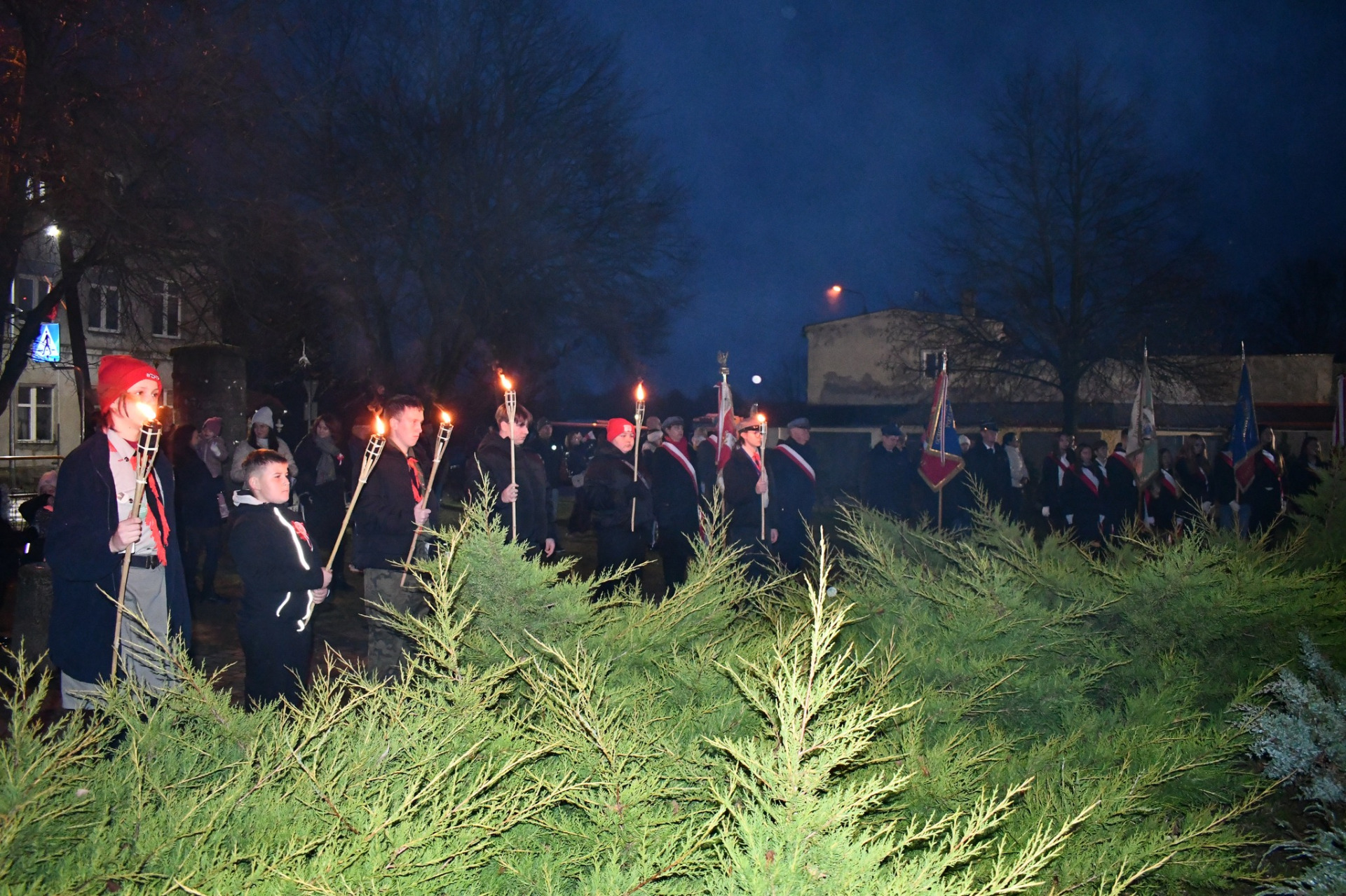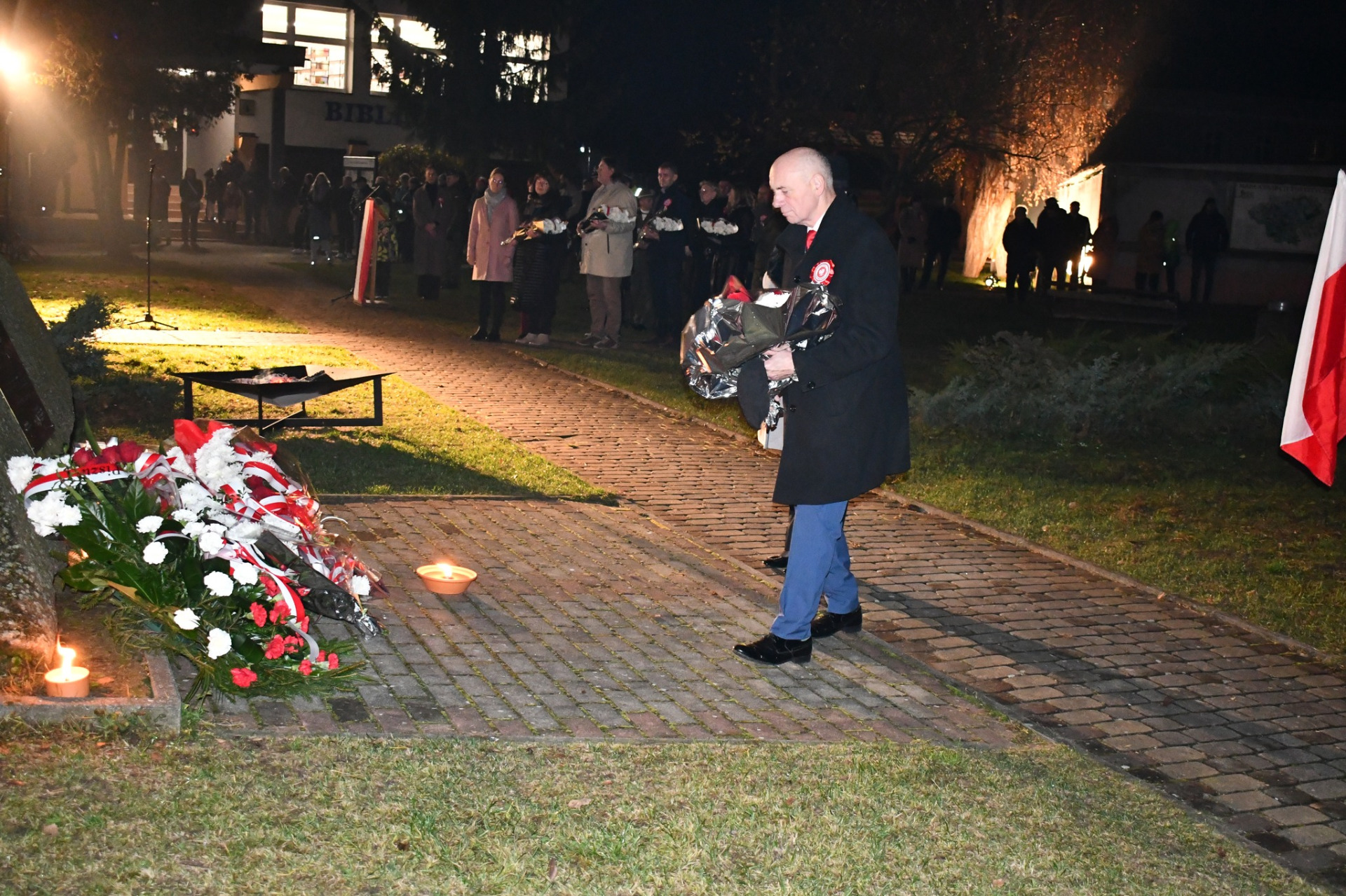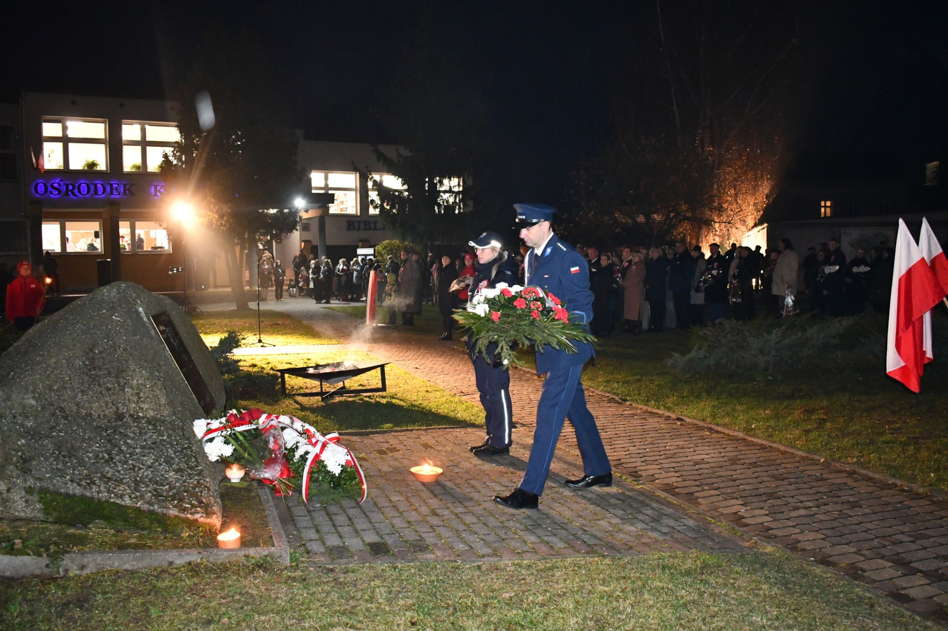 Apel pamięci z udziałem kompanii reprezentacyjnej odbył się przy obelisku upamiętniającym Józefa Piłsudskiego, gdzie delegacje złożyły wiązanki i znicze.