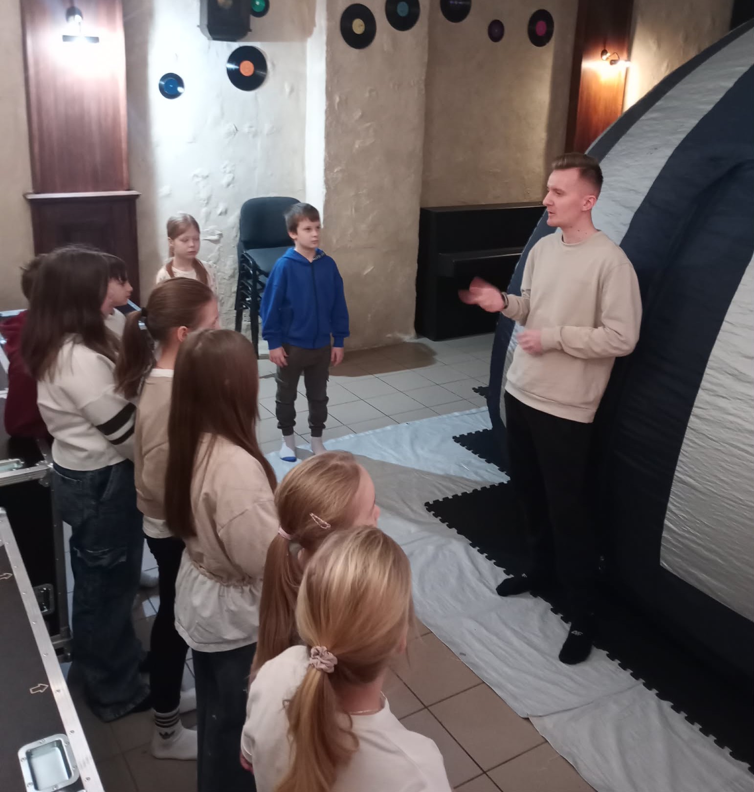 Następnie był czas na seans w kopule Kina Sferycznego. Uczestnicy zgodnie wybrali projekcję o kosmosie. Po przerwie na pączki nasi animatorzy porwali dzieci do zabawy.