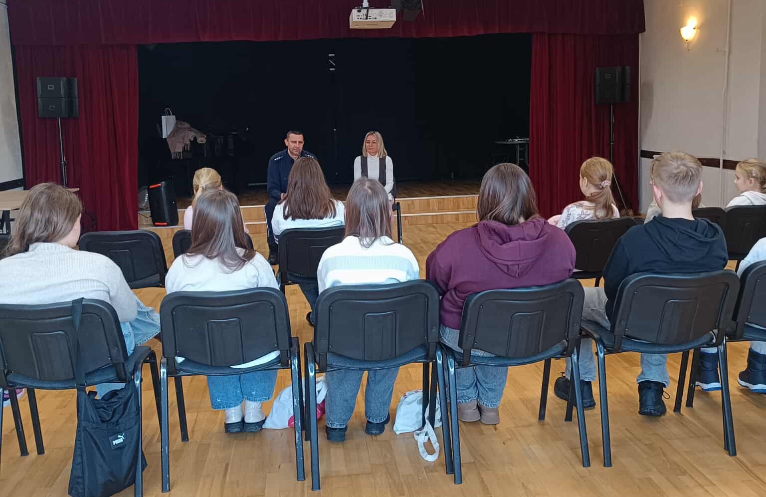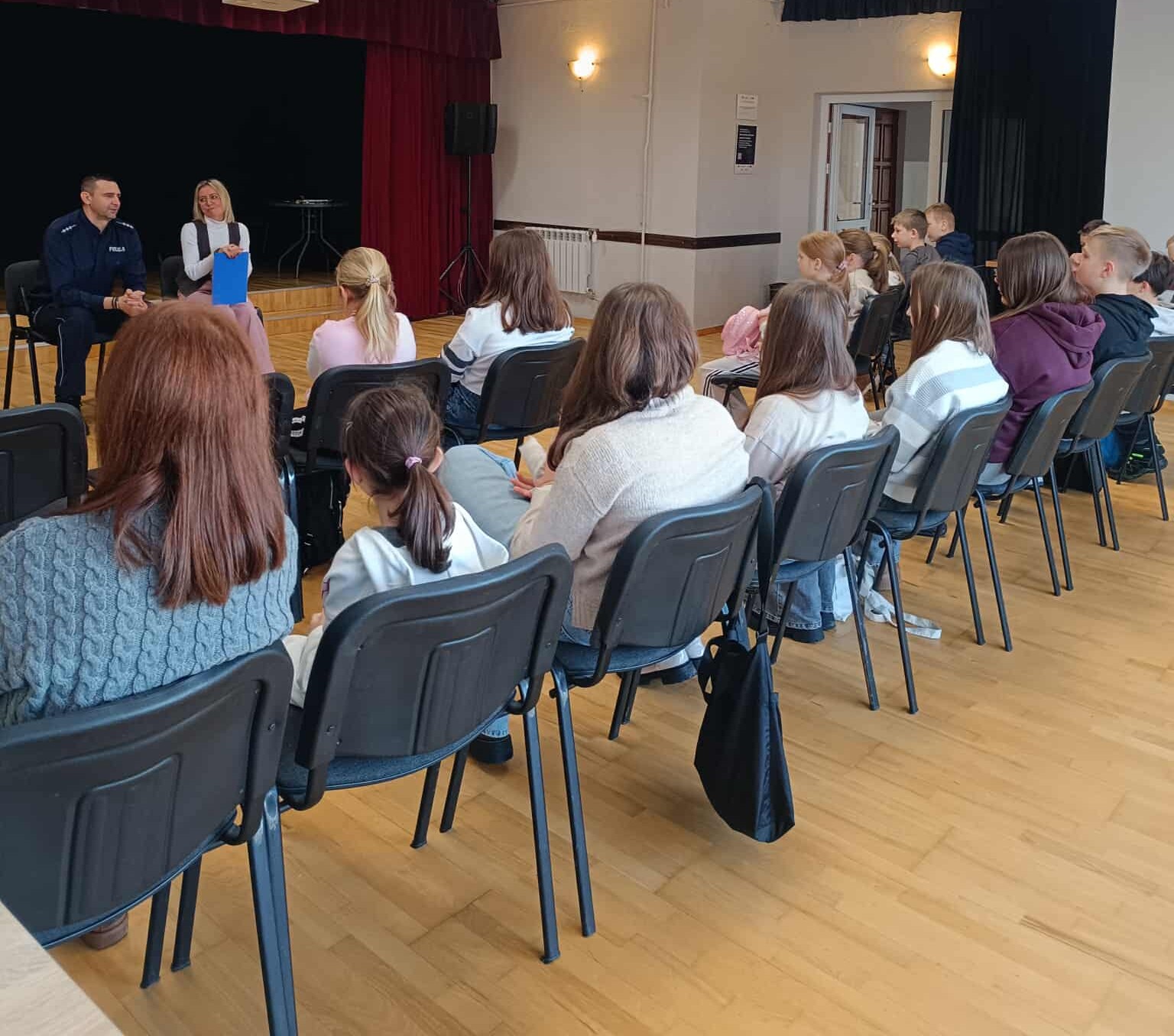 Dzień pierwszy to czas na poznanie się oraz wysłuchanie pogadanki na temat bezpieczeństwa przeprowadzonej przez Barbarę Grygorowicz-Pełnomocnika ds. rozwiązywania problemów alkoholowych oraz aspiranta sztabowego Adama Trzonkowskiego - przedstawiciela Komisariatu Policji w Białej Piskiej.