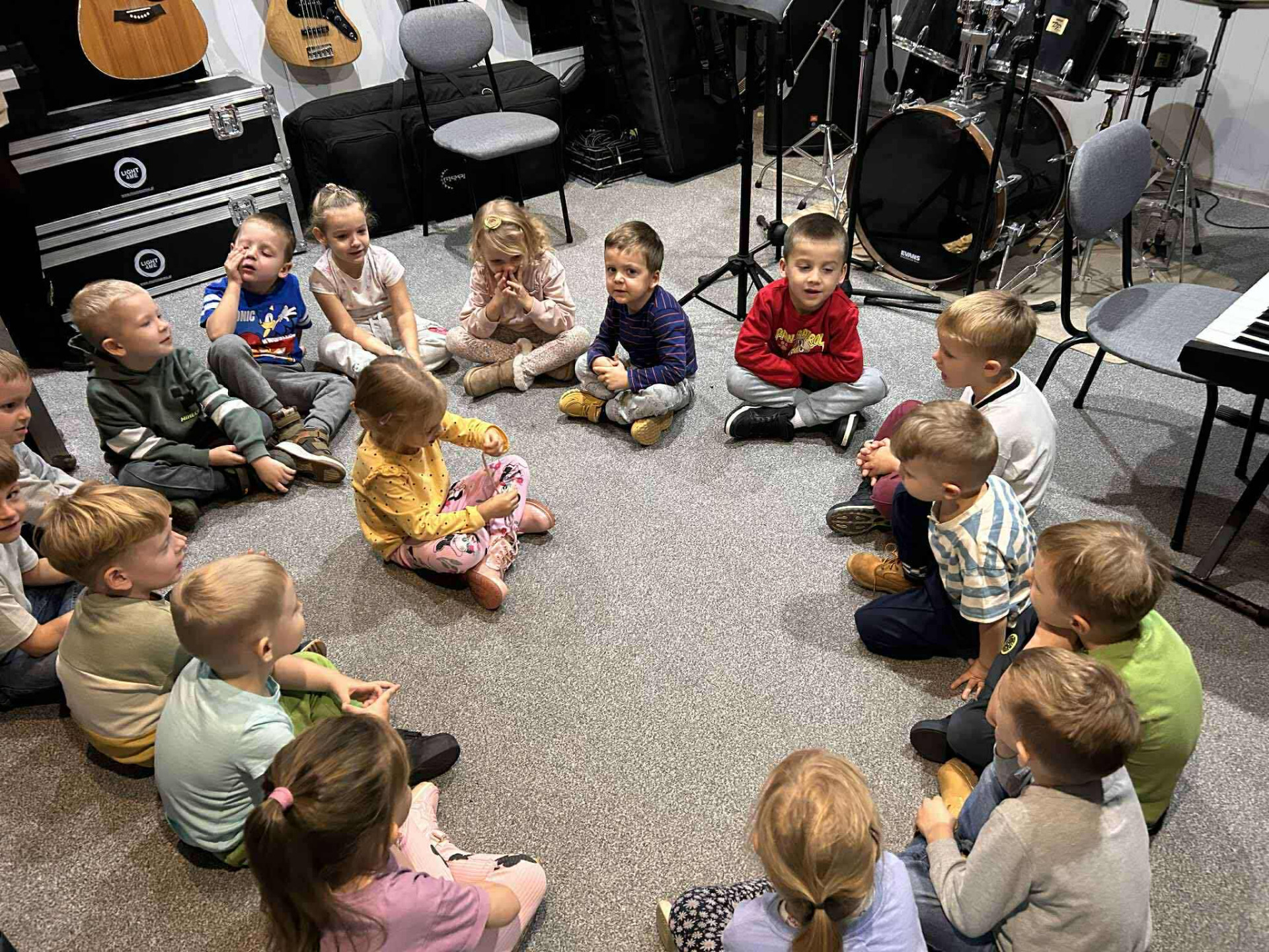 Grupa Motylki z Przedszkola Miejskiego w Białej Piskiej odwiedzili pracownię muzyczną