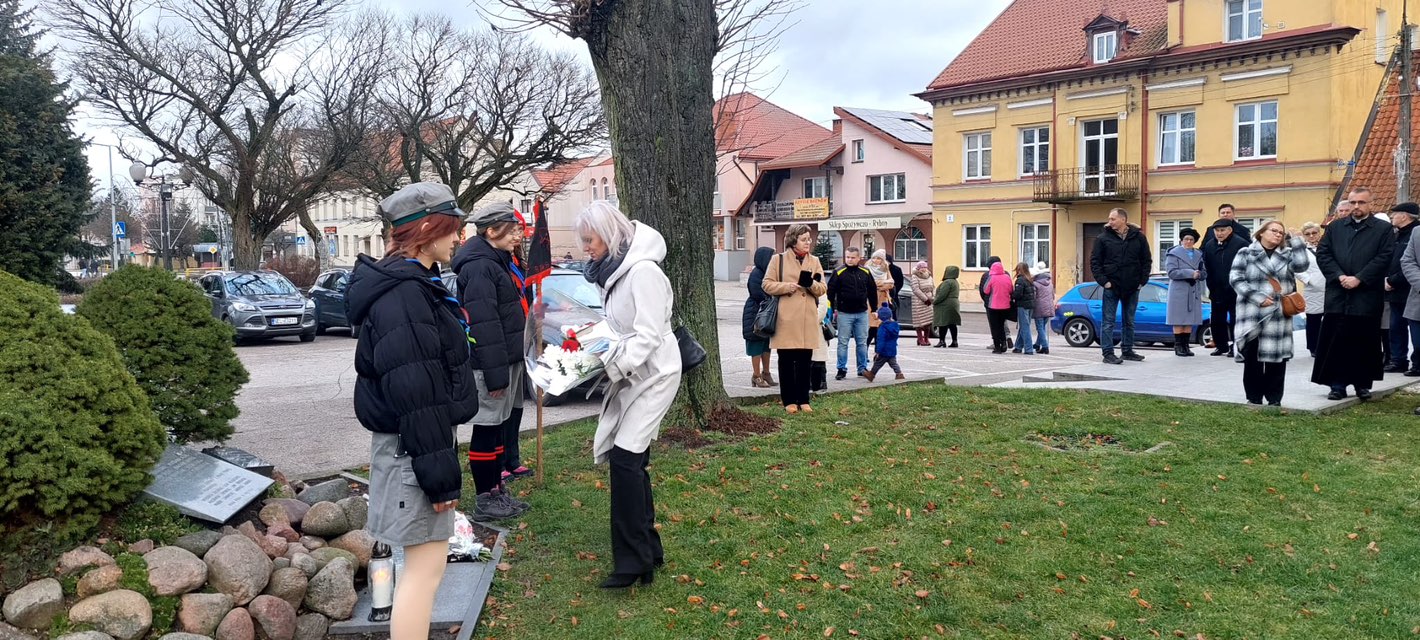Uczestnicy złożyli kwiaty przy tablicy upamiętniającej tamte wydarzenia, oddając hołd ofiarom reżimu.